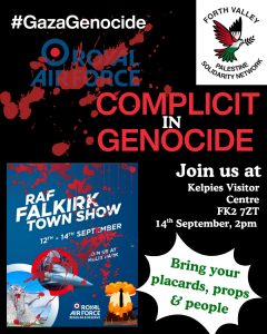 Data from these sorties is supplied directly to the occupation forces and used to perpetrate massacres of Palestinians, in what the Scottish Government now accepts is a genocide.